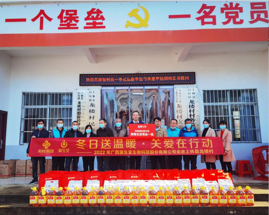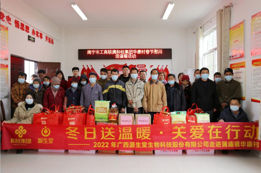 1月17日、18日,在和桂集團(tuán)黨支部的統(tǒng)一部署下,和桂源生堂會同南寧市工商業(yè)聯(lián)合會、南寧市勞動保障監(jiān)察支隊黨支部的相關(guān)黨員同志,深入到邕寧區(qū)蒲廟鎮(zhèn)華康村,上林縣白圩鎮(zhèn)龍樓村、大浪村開展春節(jié)慰問送溫暖活動。